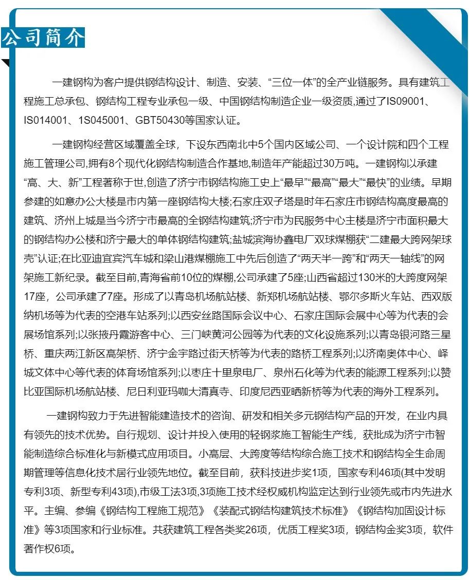 濟(jì)寧一建鋼結(jié)構(gòu)工程有限公司承建的金屬屋面及維護(hù)工程,涉及1#-4#物流倉庫、高架立體庫。倉庫跨度80米,屋面標(biāo)高34.1米,為雙向找坡結(jié)構(gòu)。該項目建設(shè)規(guī)模大、工期緊、技術(shù)精度要求高、工況復(fù)雜,自項目開始施工。公司對現(xiàn)場管理嚴(yán)格要求,積極配合業(yè)主及總包的整體調(diào)配,施工嚴(yán)格執(zhí)行施工方案,遵循規(guī)范標(biāo)準(zhǔn),合理安排人、機(jī)、料等,戮力同心將馬士基臨港旗艦倉項目打造成精 品工程、優(yōu) 質(zhì)工程。